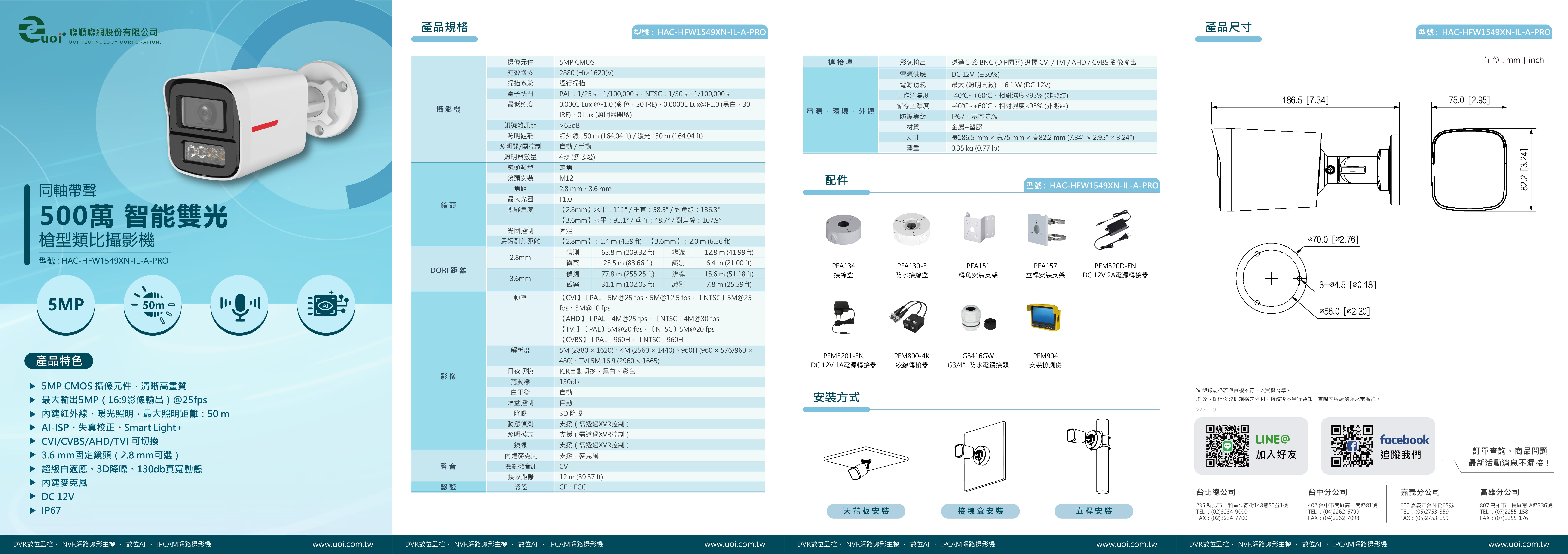 HAC-HFW1549XN-IL-A-PRO5MP 槍型智能雙光 同軸帶聲 類比攝影機