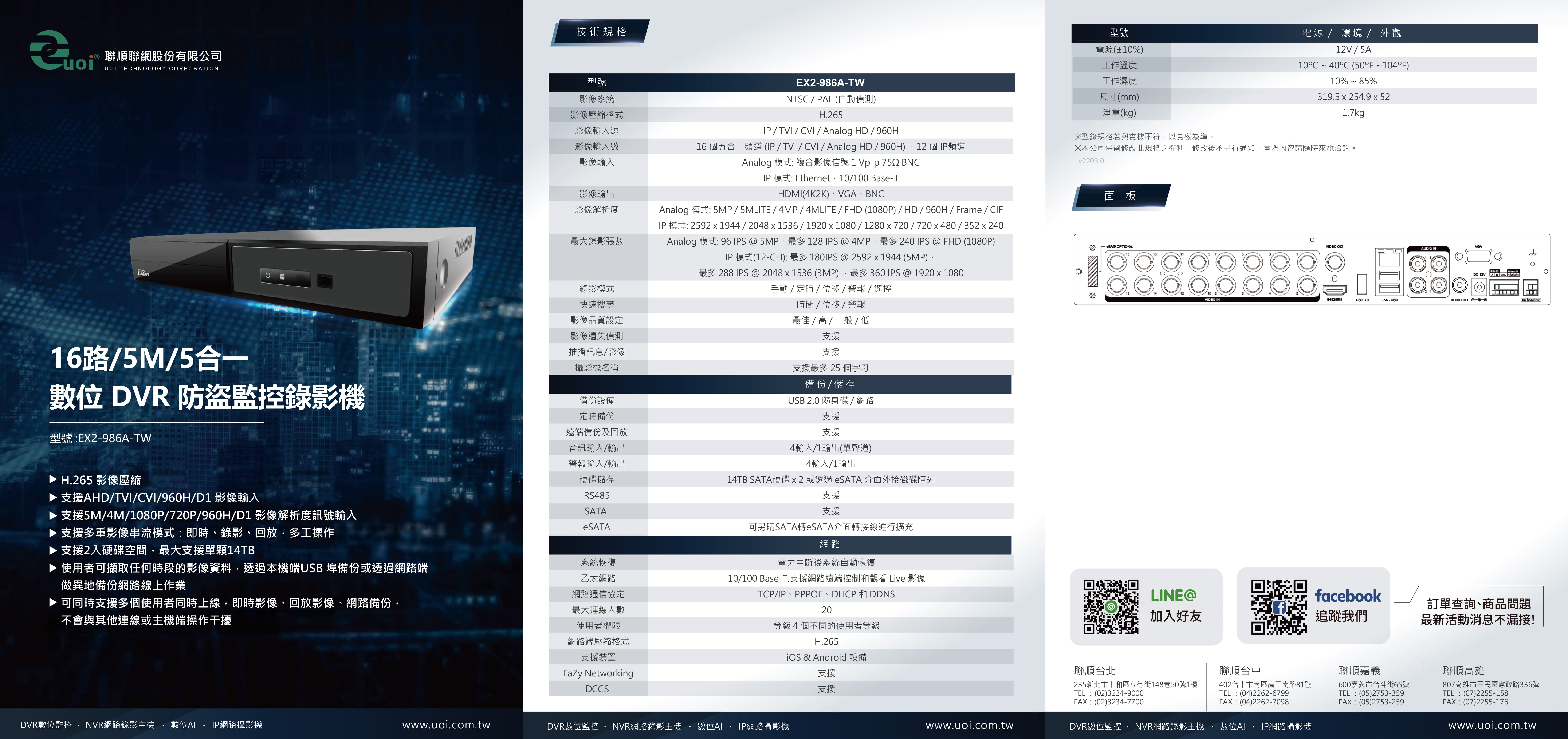 EX2-986A-TW16CH/5M/5合一數位 DVR 防盜監控錄影機