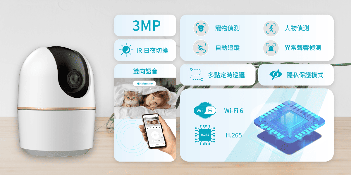 • 3MP 1/3.2″ CMOS 攝像元件,清晰高畫質
